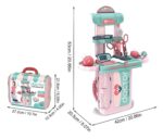 - The toy set includes stethoscopes, thermometers, medicine bottles, scissors, ,shelves and other medical tools