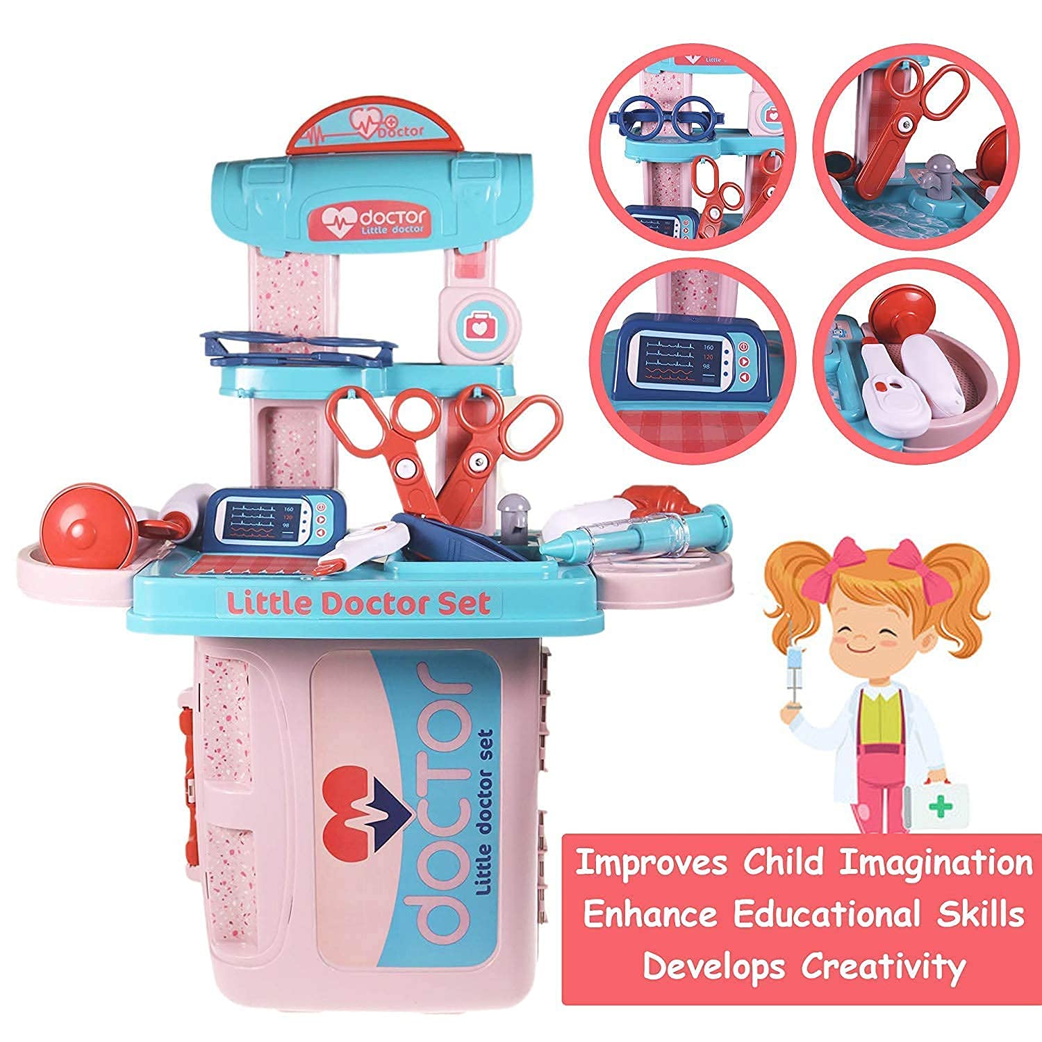 - Children’s safety and health is the top priority. Our doctor pretend play toy sets are strictly made of ABS eco-friendly plastic, and the bright and lively color scheme is very cute. It does not contain bisphenol A, is tasteless, firm, anti-drop, smooth to the touch, without burrs, and will not harm your baby’s skin or endanger your baby’s health.