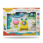 A bright, safe, easy-grip rattle pack that keeps little hands busy and happy — the perfect ready-to-gift set!