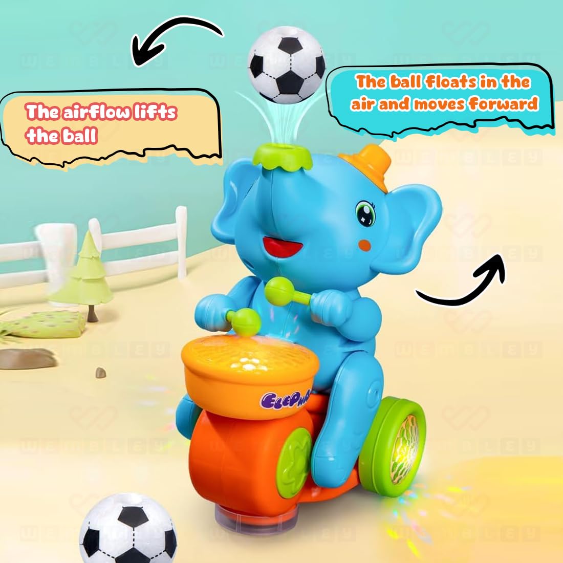 • UNIQUE BALL LEVITATION: Adding a magical touch to playtime, the toy’s trunk blows continuous air, making the included ball float above it when placed on the trunk. This unique ball levitation feature captivates kids’ attention, sparking curiosity and excitement while encouraging interactive play.