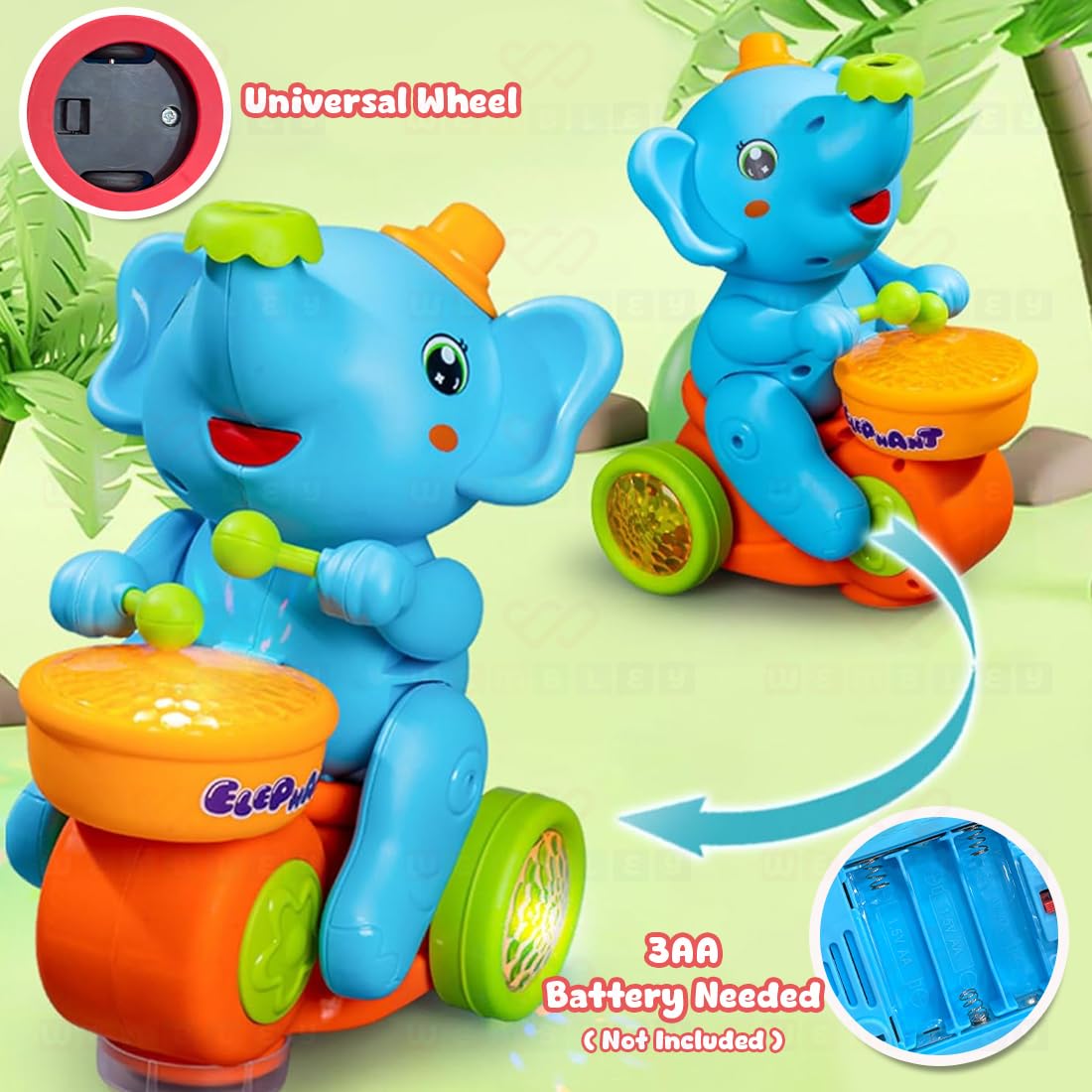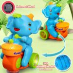 • LIGHTS & MUSIC: Equipped with vibrant 3D flashing lights and dynamic sound effects, this toy delivers a multisensory experience. It plays melodious music, drum beats, and elephant sounds that enhance the fun. The lights shine brightly, creating an engaging visual effect, especially in dim environments, making it perfect for day or night play.