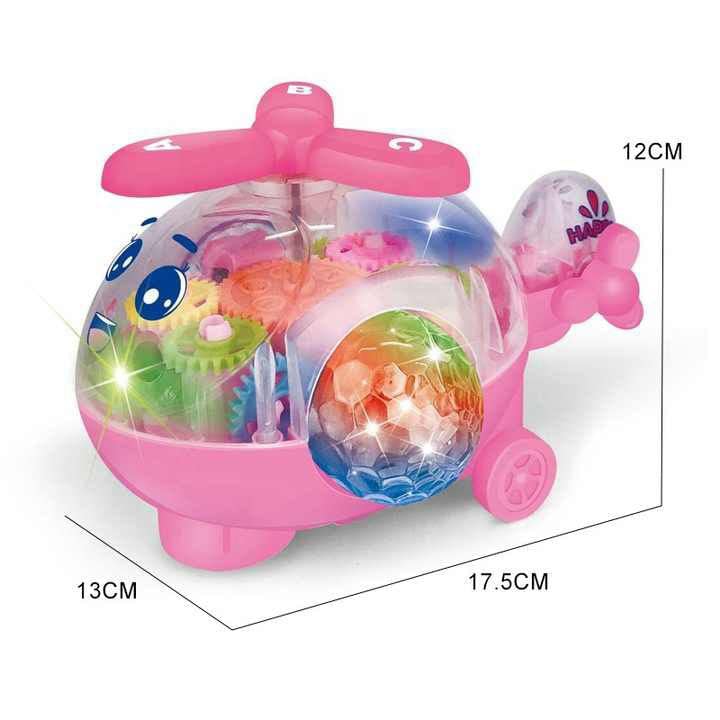 Fun Transparent Helicopter with Lights, Music, and Spinning Gears