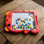 - 【Safe and Durable Magnetic Dot Board】 The Magnetic Dot Art set is made of durable and sturdy plastic. The colorful magnetic beans are sealed inside it with a transparent plastic panel, so the beans will not be lost or swallowed which is safe for your child to use.