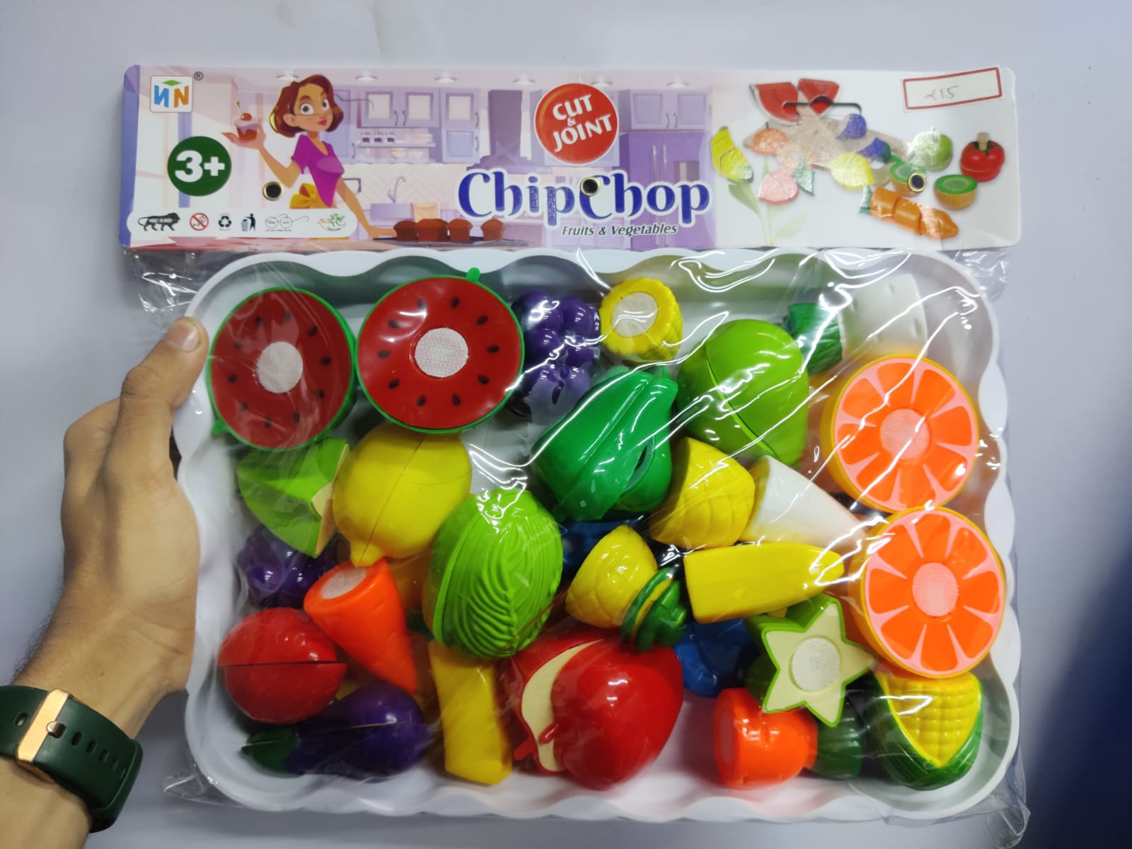 • SLICEABLE FRUITS: A variety of fruits that can be “cut” into pieces and then reassembled. These fruits usually come with velcro to simulate the slicing action.