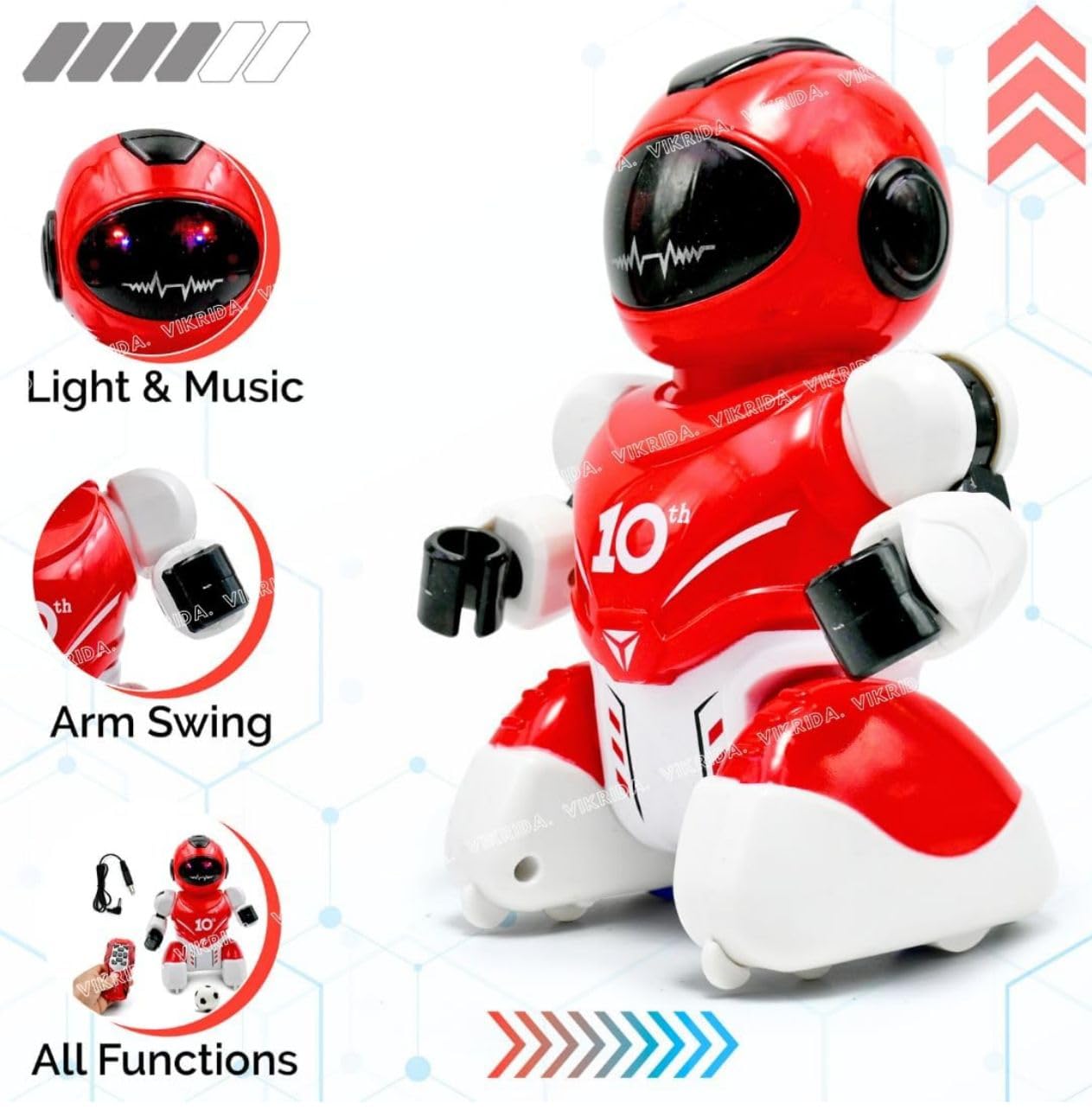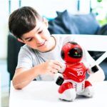 - INTERACTIVE DESIGN: Remote-controlled robot with LED eyes and sleek red-white design features soccer playing capabilities for engaging gameplay