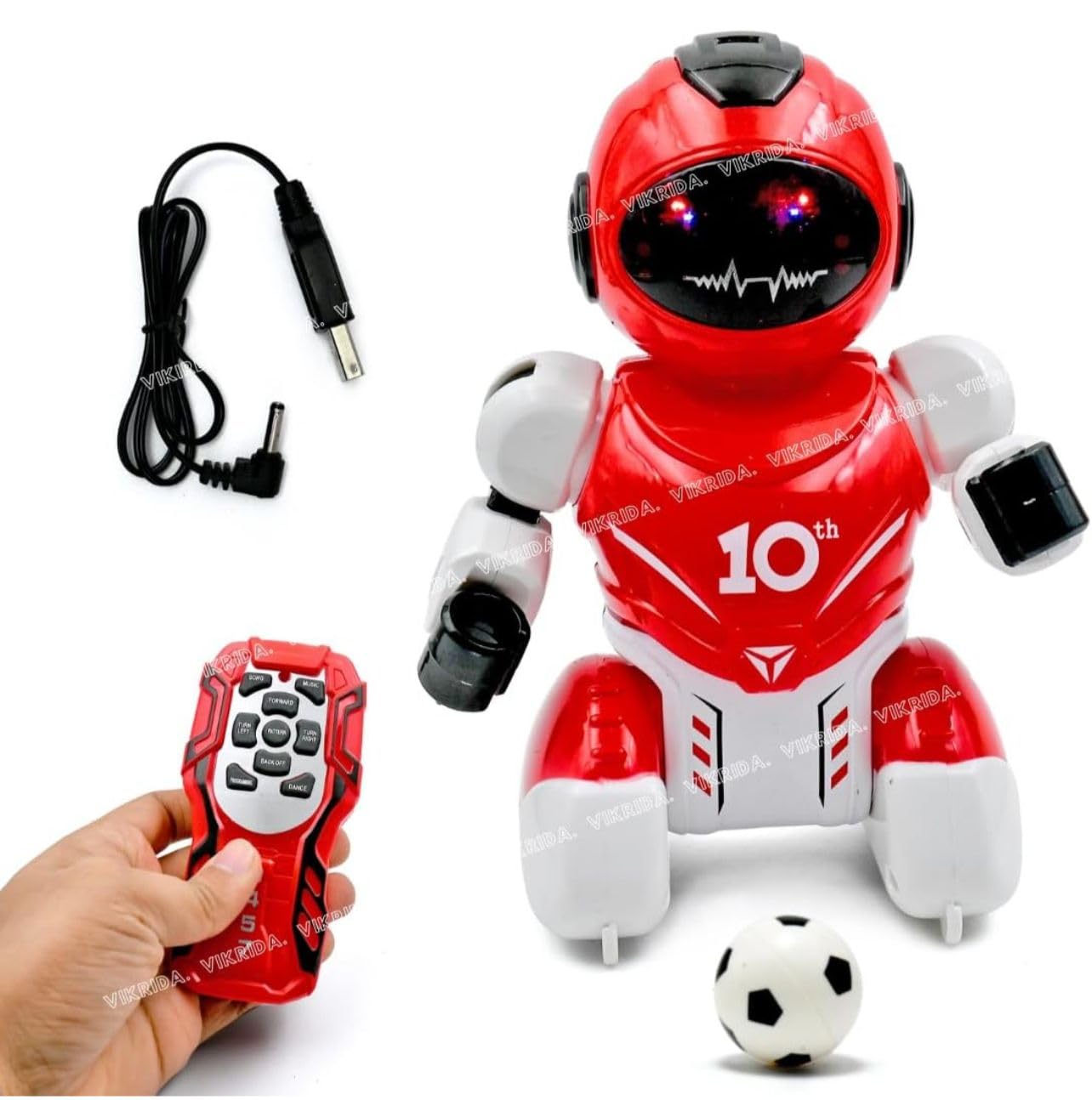 - COMPLETE SET: Includes robot footballer, remote control unit, USB charging cable, and mini football for immediate play
