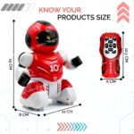 - COMPACT SIZE: Robot measures 15 cm in height, 11 cm in length, and 8 cm in width, with remote control dimensions of 12.5 cm x 6 cm