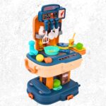 - 2-IN-1 DESIGNING The design of this portable storage box not only a mini kitchen playset table, but also a School Bag, which is convenient for children to travel and play in unlimited venues, this can let kids get into the habit of storage from an early age.