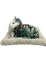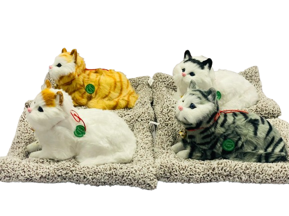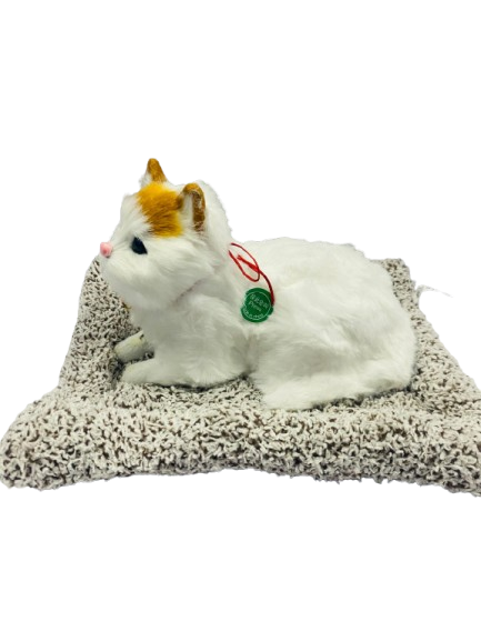 Give the perfect gift with this Soft Plush Sleeping Cat with open &close eyes toy, designed to melt hearts. Made from high-quality cotton and faux animal fur, this cute and realistic cat offers a cozy feel with lifelike details. With a gentle press, it emits a soft, realistic sound, adding to its charm.
